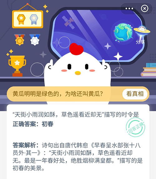 天街小雨润如酥草色遥看近却无描写的时令是 支付宝蚂蚁庄园2月19日答案