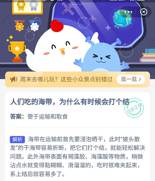 人们吃的海带为什么有时候会打个结 支付宝蚂蚁庄园6月19日答案