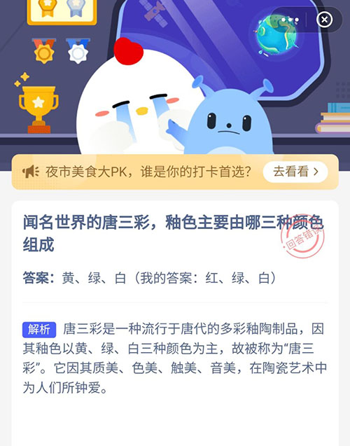 闻名世界的唐三彩釉色主要由哪三种颜色组成 支付宝蚂蚁庄园6月4日答案