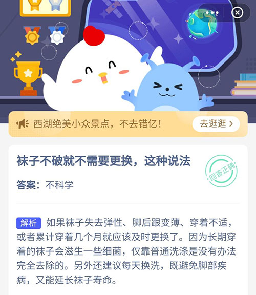 袜子不破就不需要更换这种说法 支付宝蚂蚁庄园7月3日答案