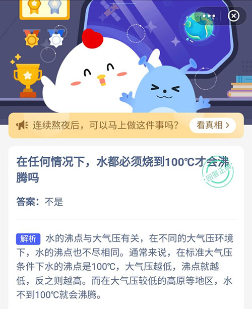 在任何情况下水都必须烧到100℃才会沸腾吗 支付宝蚂蚁庄园6月30日答案