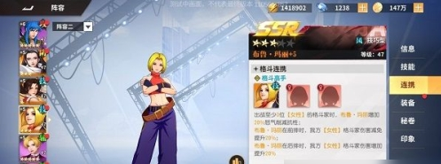 2.六人之间存在多种连携之力,比如说不知火可与神乐千鹤解锁女子格斗家,提升己身攻击力,麻宫雅典娜可与不知火解锁当家花旦,提高物抗,琼能和神乐千鹤解锁女子格斗家增加生命,和不知火解锁恋爱运大凶,提高15%物抗等等。