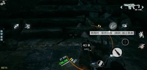 首先告诉大家,怎么奔跑吧,只要大家向前一段距离,并且方向不变就可以变成奔跑的形式,奔跑的模样跟大多数的FPS游戏的动作是一样的,将枪贴在身上并不是对准前方的模样。就可以进行奔跑了。
