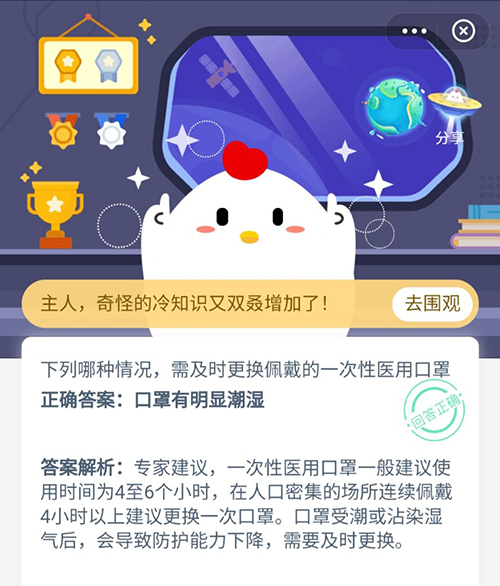 下列哪种情况需及时更换佩戴的一次性医用口罩 支付宝蚂蚁庄园1月29日答案