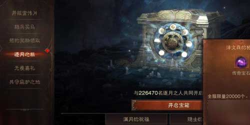 3、满月的馈赠开启后可以从其中四个奖励中随机获取一个,保底获得强化不朽钥石,概率获得限量传奇宝石泽文森的独居。