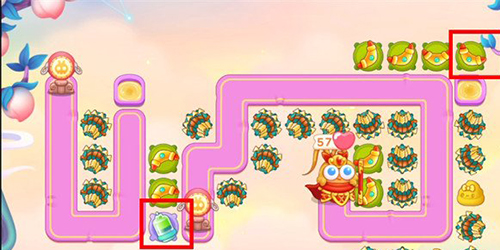 7.第四波等待桃子出现的时间,进来将场上的道具全部拆除,有钱了将左边的回旋镖优先升级;