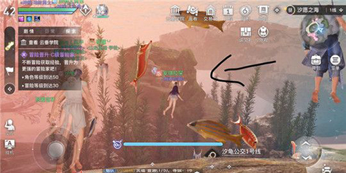 1、首先接到任务之后去汐愿之海,珊瑚海,坐标没办法寻路,具体位置在这里,往标记方向游,实在找不到的话可以一边游一边打开相机,冲着相机游过去就看见一个大大的人鱼雕像,拍个照。