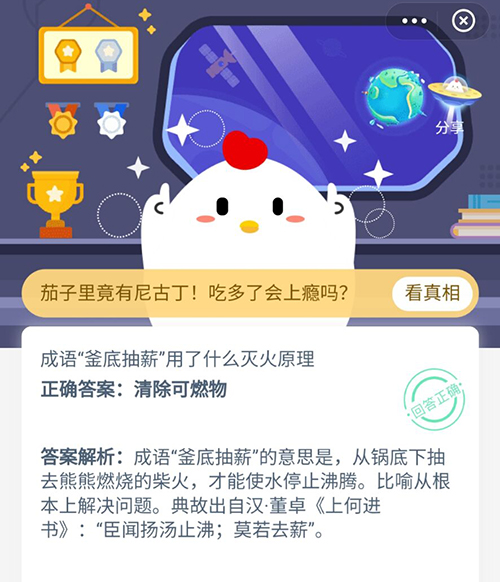 成语釜底抽薪运用的灭火原理是什么 支付宝蚂蚁庄园11月30日答案