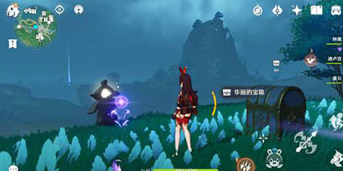 6.回到大厅继续往里走,右手边房间里吧三颗宝珠放入墙壁,会出现三个雷灵。从派蒙的对话中得知壁画中宝珠的位置跟宝藏有关。