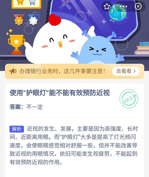 使用护眼灯能不能有效预防近视 支付宝蚂蚁庄园10月15日答案