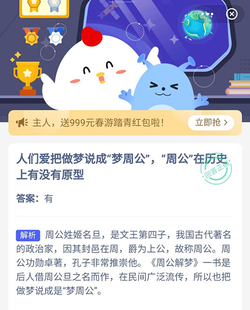 人们爱把做梦说成梦周公周公在历史上有没有原型 支付宝蚂蚁庄园3月26日答案