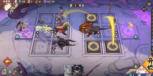 第一回合:1号位上法阵复制对面1号位,3号位过客挡对面的牛,6号位无相回收3号位的灵枪。