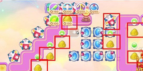 1.开局在下图位置放置一个顶级玩具飞机,再放一个毒针塔,玩具飞机锁定钱袋子;
