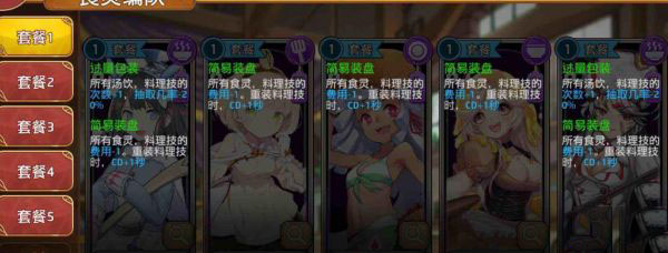 相对不错的食物技构建上便是七张卡(五张卡+2汤饮卡),并非输出食物技的用度要尽量的低,小编的阵容中头盘和主食是1费,副菜便是2费,如此无论是主动作战或是手动式推图都能尽量抽取清场技,4轮aoe伤害砸下来还没有击杀的怪是不可能的。