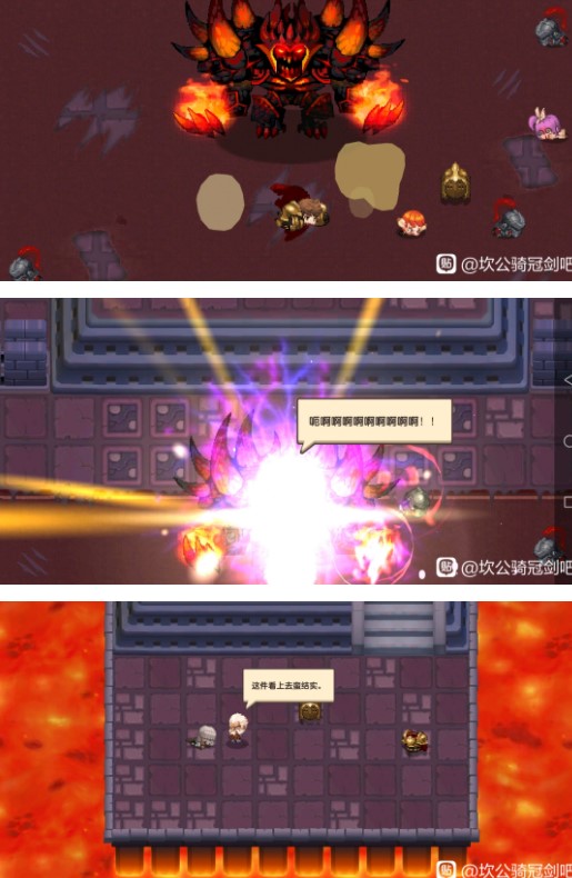1,boss有4种攻击方式:1:平a;2:向周围丢分散开的烈焰碎片,碰到爆炸;3,跳到角落以后发射激光攻击(看到跳开就离开跑到他旁边去);4,超大范围的烈焰之环,一共三次,吃两次必死。