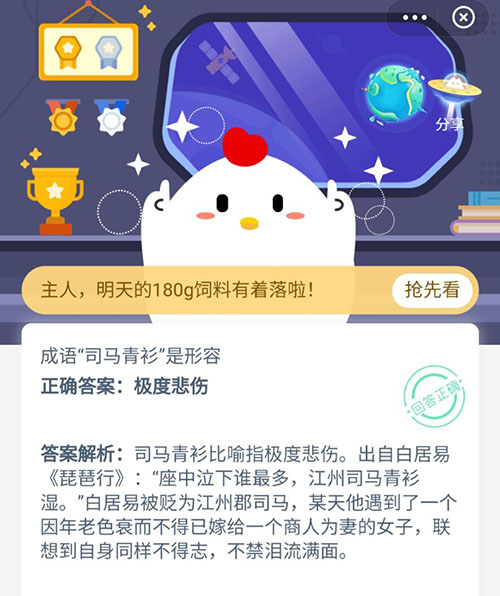 成语司马青衫是形容什么 支付宝蚂蚁庄园10月13日答案