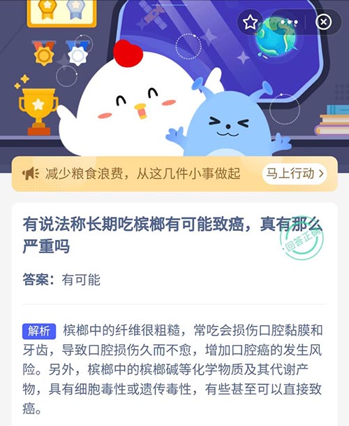 有说法称长期吃槟榔有可能致癌真有那么严重吗 支付宝蚂蚁庄园10月23日答案