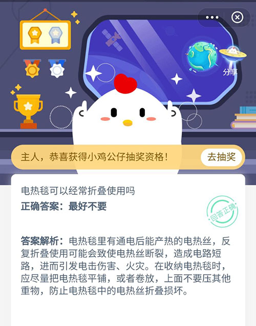 电热毯可以经常折叠使用吗 支付宝蚂蚁庄园12月28日答案