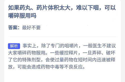 如果药丸药片体积太大可以嚼碎服用吗 支付宝蚂蚁庄园3月2日答案