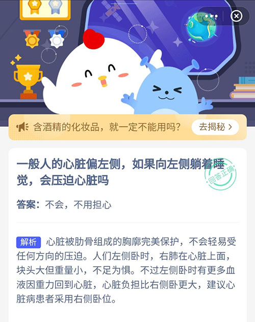 一般人的心脏偏左侧如果向左侧躺着睡觉会压迫心脏吗 支付宝蚂蚁庄园6月16日答案