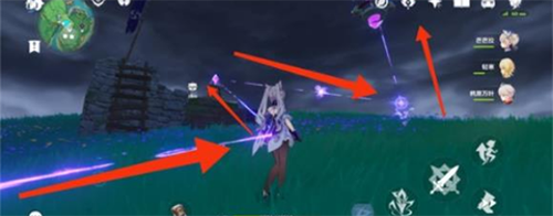 1、首先玩家要先将两个继电石都收集并且放置好;之后去触碰左右两边带电元素的花,使得自身附着电元素可以激活中转站。