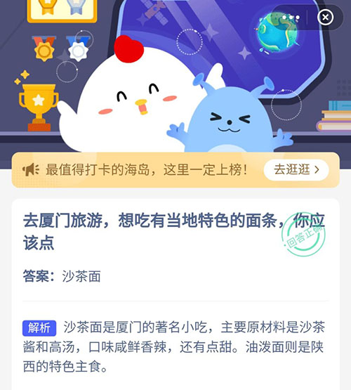 去厦门旅游想吃有当地特色的面条你应该点 支付宝蚂蚁庄园4月27日答案