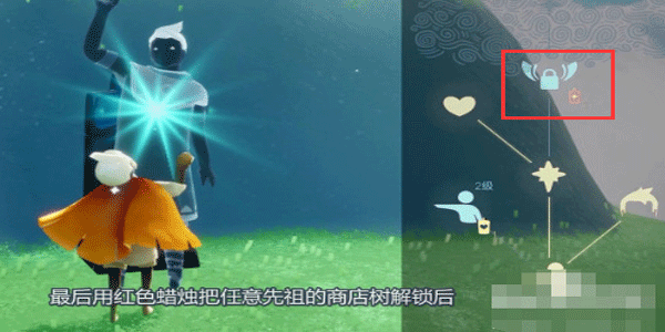 4、最后用蜡烛随便将一个先祖商店解锁,解锁后就会获得永久的光之翼。