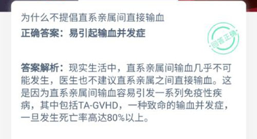 为什么不提倡直系亲属间直接输血 支付宝蚂蚁庄园9月29日答案
