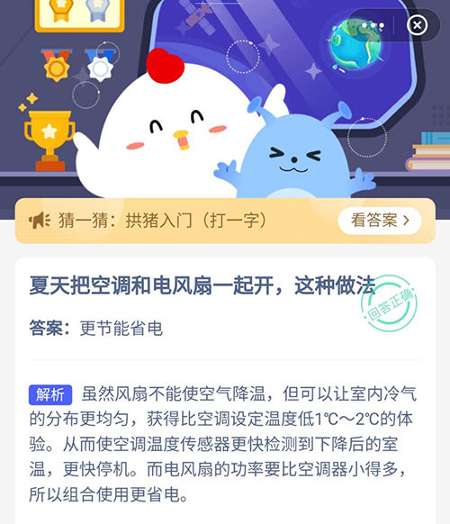 夏天把空调和电风扇一起开这种做法 支付宝蚂蚁庄园7月15日答案