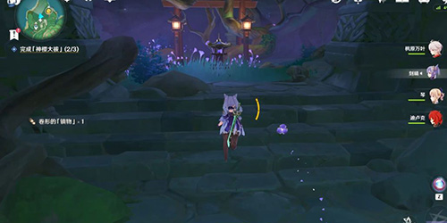 7.进入到后面的屏障中,使用雷元素攻击大狐狸雕像,出现镇物