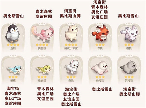 奥比岛手游宠物分布一览-奥比岛手游宠物分布介绍