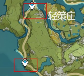 路径:推荐轻策庄以西岸边传送点,其实这两个传送点都是一条路,采集起来也是比较方便的(如图)