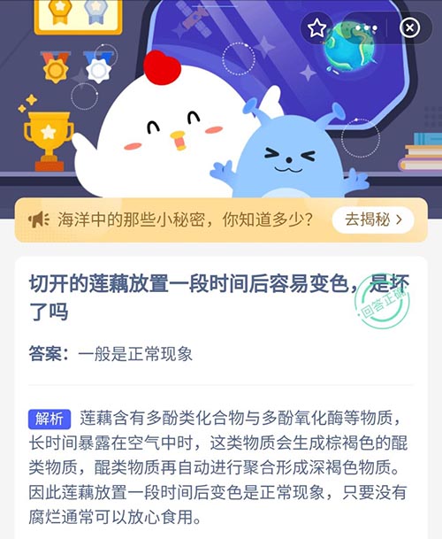 切开的莲藕放置一段时间后容易变色是坏了吗 支付宝蚂蚁庄园9月11日答案