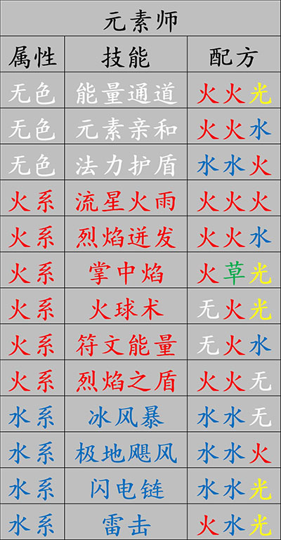 元素方尖技能配方有哪些-元素方尖技能配方介绍