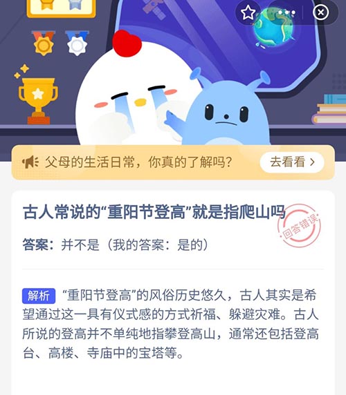 古人常说的重阳节登高就是指爬山吗 支付宝蚂蚁庄园10月14日答案
