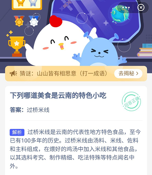 下列哪道美食是云南的特色小吃 支付宝蚂蚁庄园7月13日答案