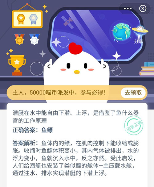 潜水艇借鉴了鱼的什么器官 支付宝蚂蚁庄园11月11日答案