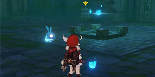 2.第二处机关是开门,有点类似我们在璃月遇到的那种石灵灯笼,需要找到两个蓝色的鬼火放进灯笼里,石门就会打开。