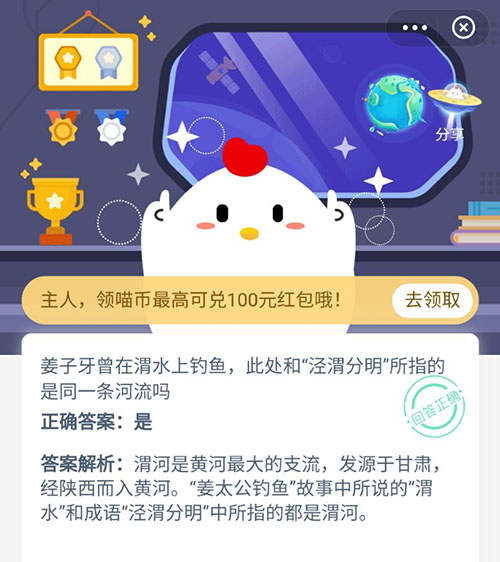 姜子牙曾在渭水上钓鱼泾渭分明指的是同一条河流吗 支付宝蚂蚁庄园11月2日答案