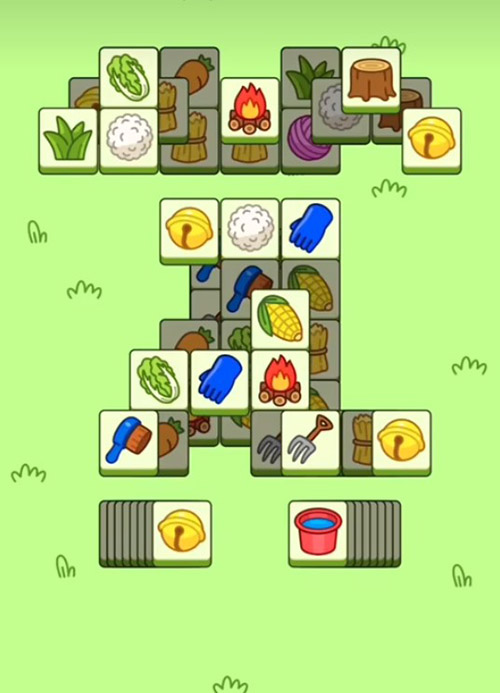 2、同层可以三消的就先消除同层,没有的话就需要查看下一层的物品,然后将需要的物品的上方的道具放置到槽中获得下方的道具。