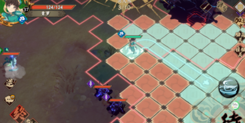 3、第三回合,青萝站在这个位置,非常安全,而且还能引发BOSS放技能,给接下来的走位腾出空间来。法阵在小怪攻击范围内,尉迟良原地待机一回合。