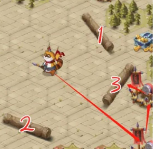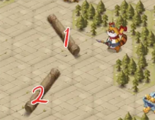 2.在经过鲁智深与镇关西的第一段剧情以后,来到了下图的地图中,这三根柱子的推动步骤是先推1号柱子(见下图)