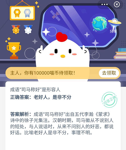 成语司马称好是形容人什么 支付宝蚂蚁庄园10月21日答案