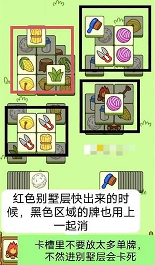2、这里快进入别墅层,盲盒和黑色区域都用起来,卡槽里的单牌不要放太多,不然进别墅层会卡死。