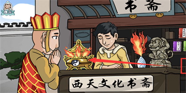 3、玩家将右下角那个蓝色的“无字真经”拖动到火炉里;
