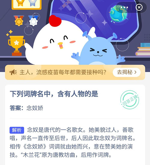 下列词牌名中含有人物的是 支付宝蚂蚁庄园4月29日答案