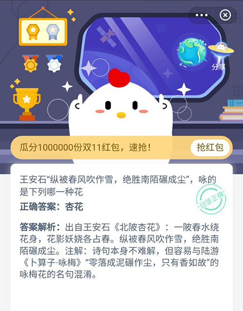 王安石纵被春风吹作雪是哪种花 支付宝蚂蚁庄园11月6日答案
