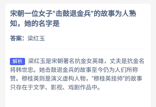 宋朝一位女子击鼓退金兵故事为人熟知她的名字是 小鸡宝宝考考你蚂蚁庄园3月8日答案