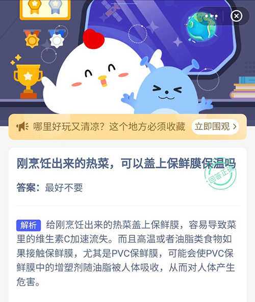 刚烹饪出来的热菜可以盖上保鲜膜保温吗 支付宝蚂蚁庄园7月14日答案