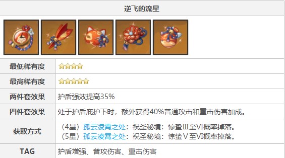 四套效果:处于护盾效果下获得40%的普通攻击和重击伤害加成